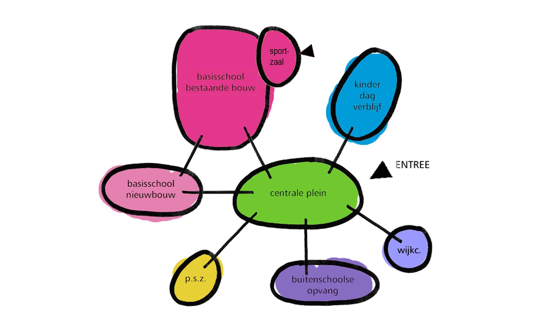 The municipality of Langedijk wanted an existing primary school to become a community school with all school and daycare facilities in one common housing. It makes it a centre of the district, the town square where people meet and work together. Obviously during the construction phase, the school must be able to keep running and have minimal nuisance. The other functions came over from the village of Noord-Scharwoude.